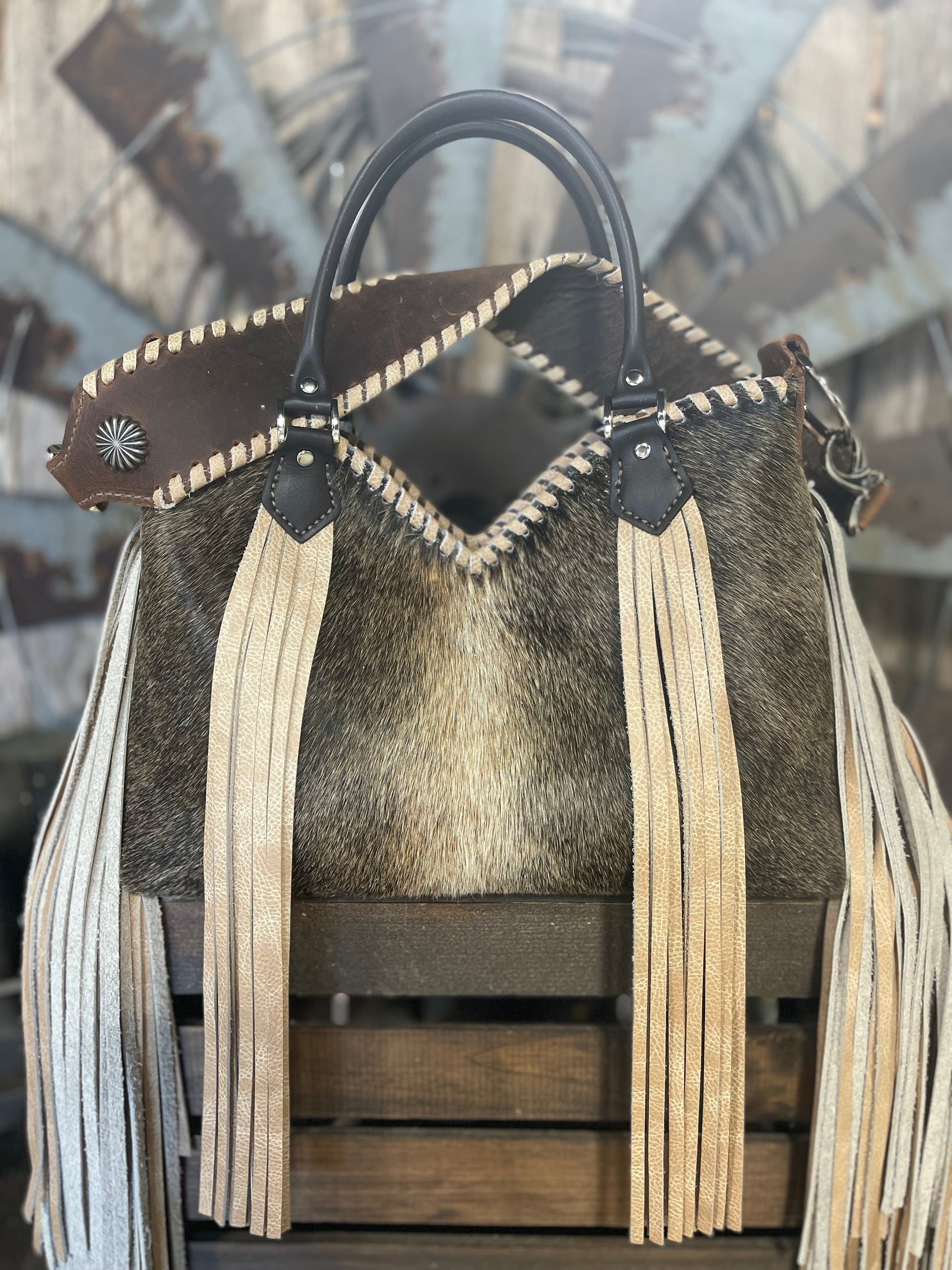 Lined with two interior leather pockets