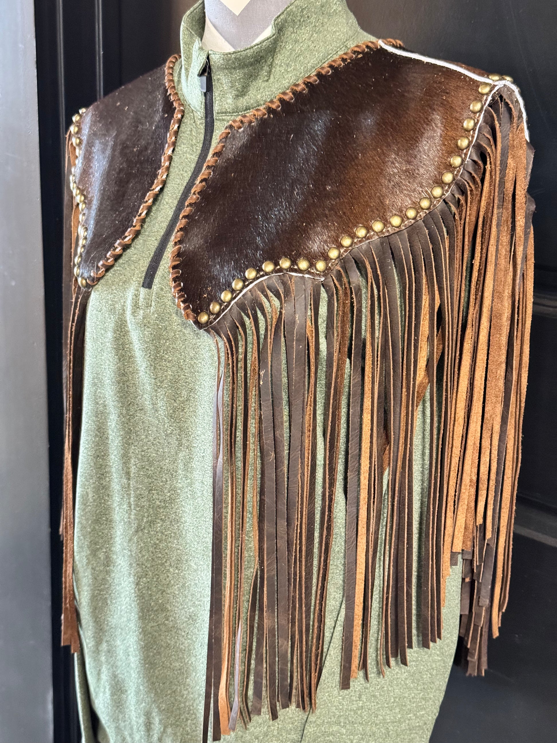 Cowhide Cape with Fringe and Stud Accents