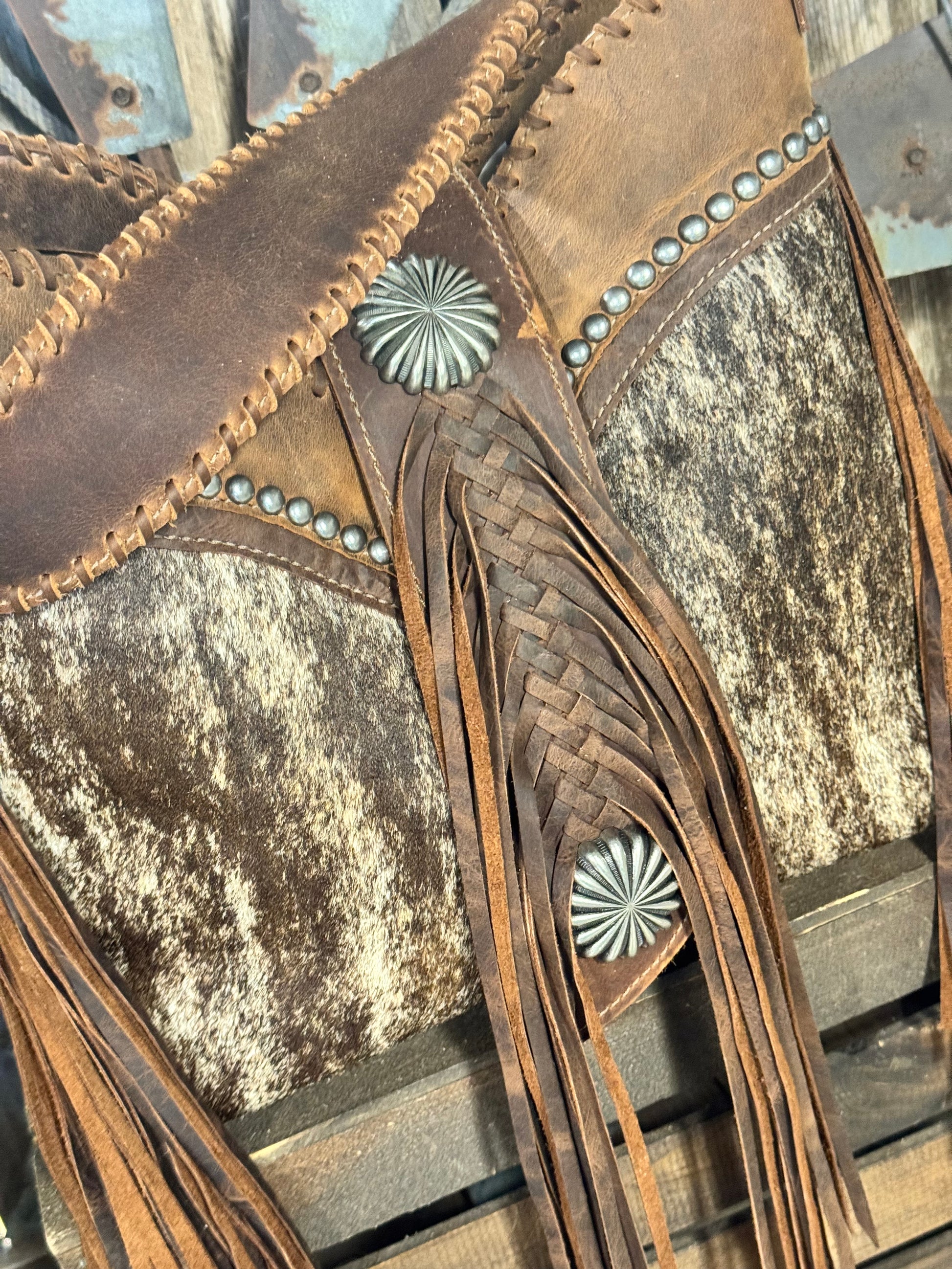 Lined with two interior leather pockets