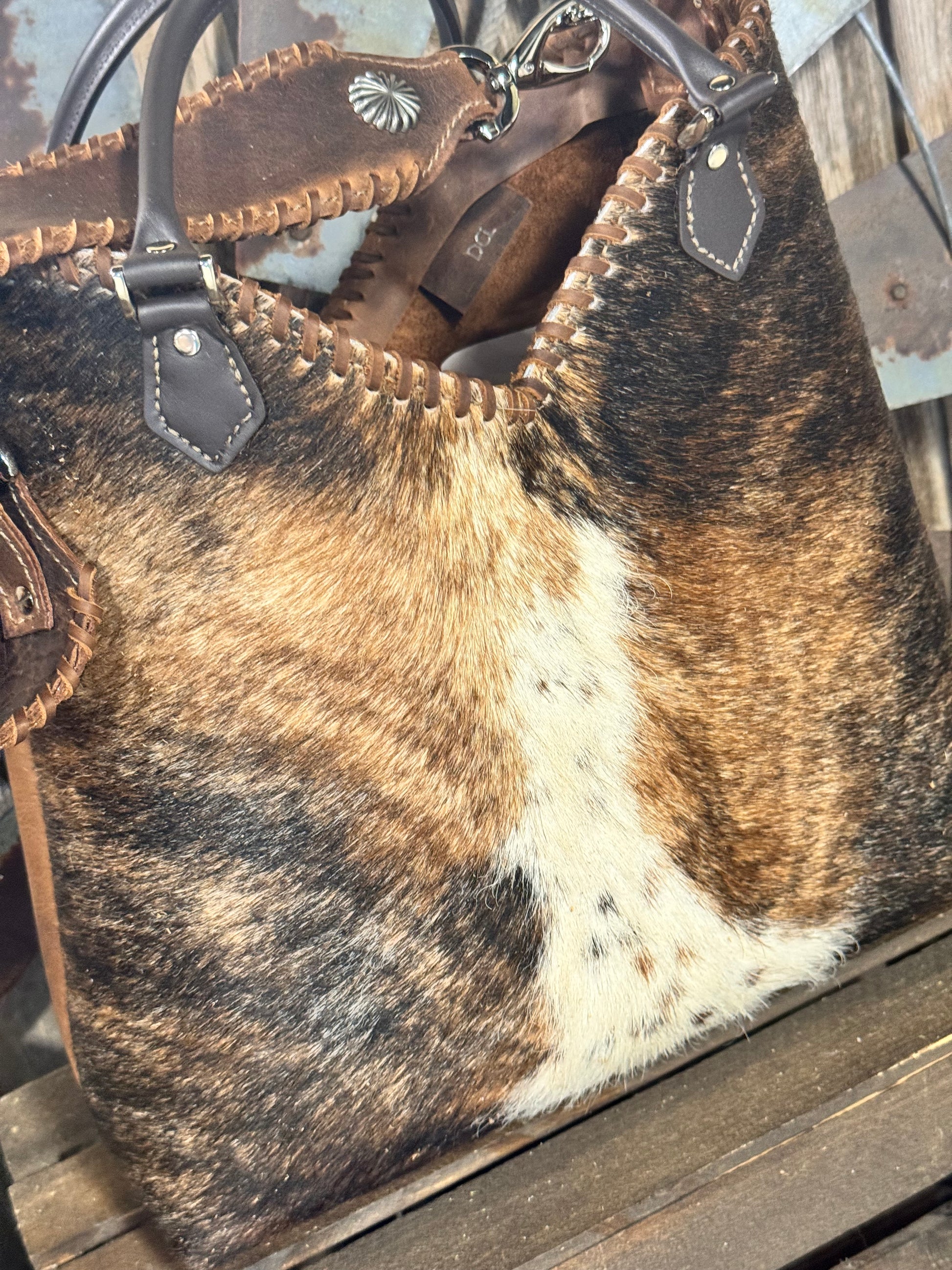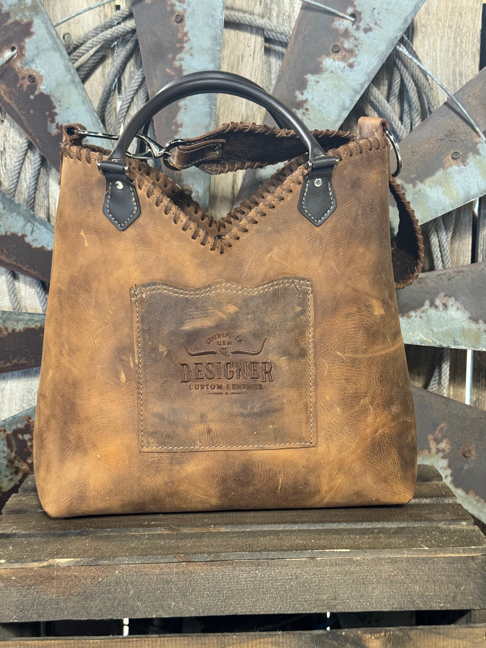 Lined with two interior leather pockets