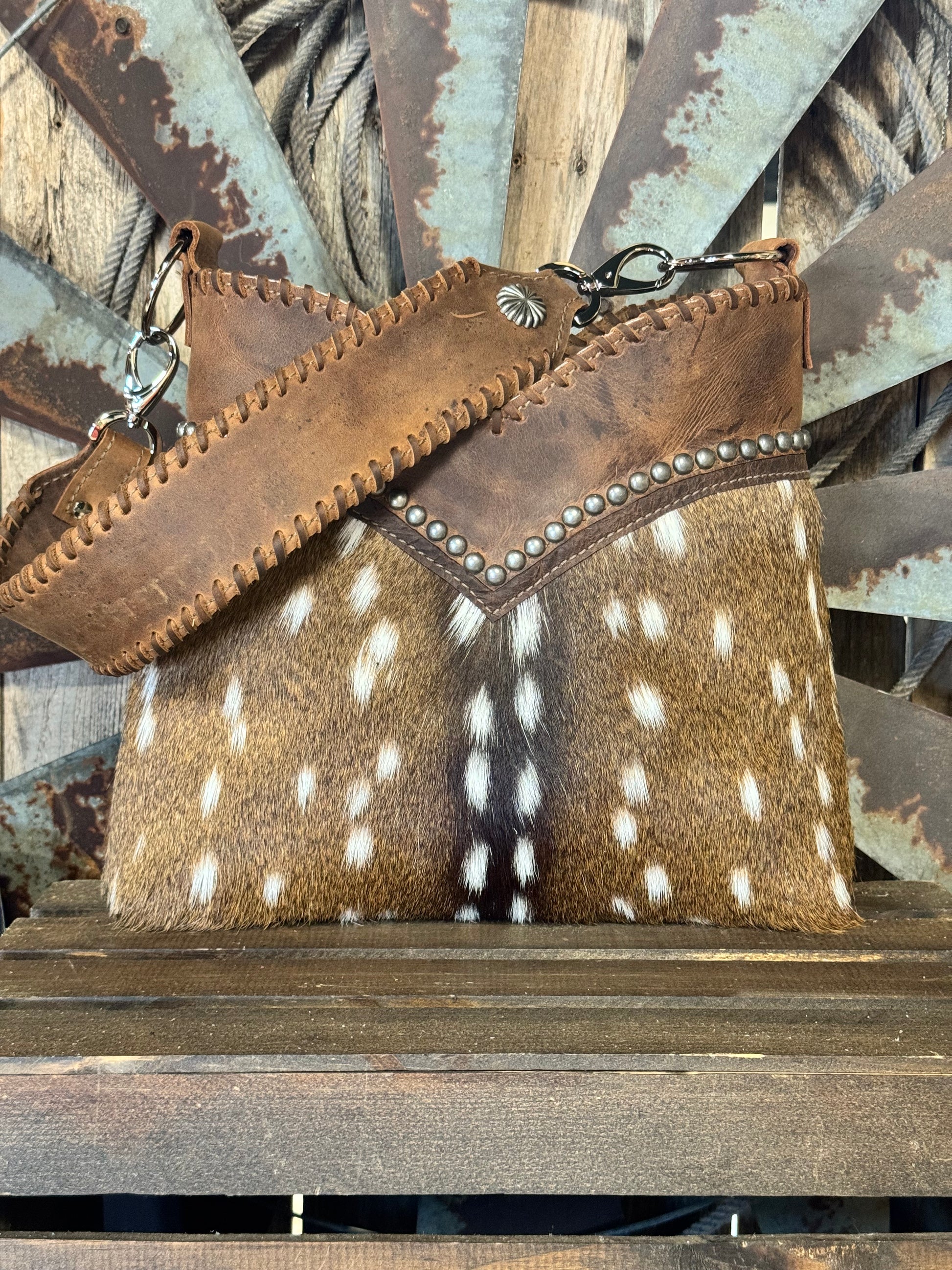 Lined with two interior leather pockets