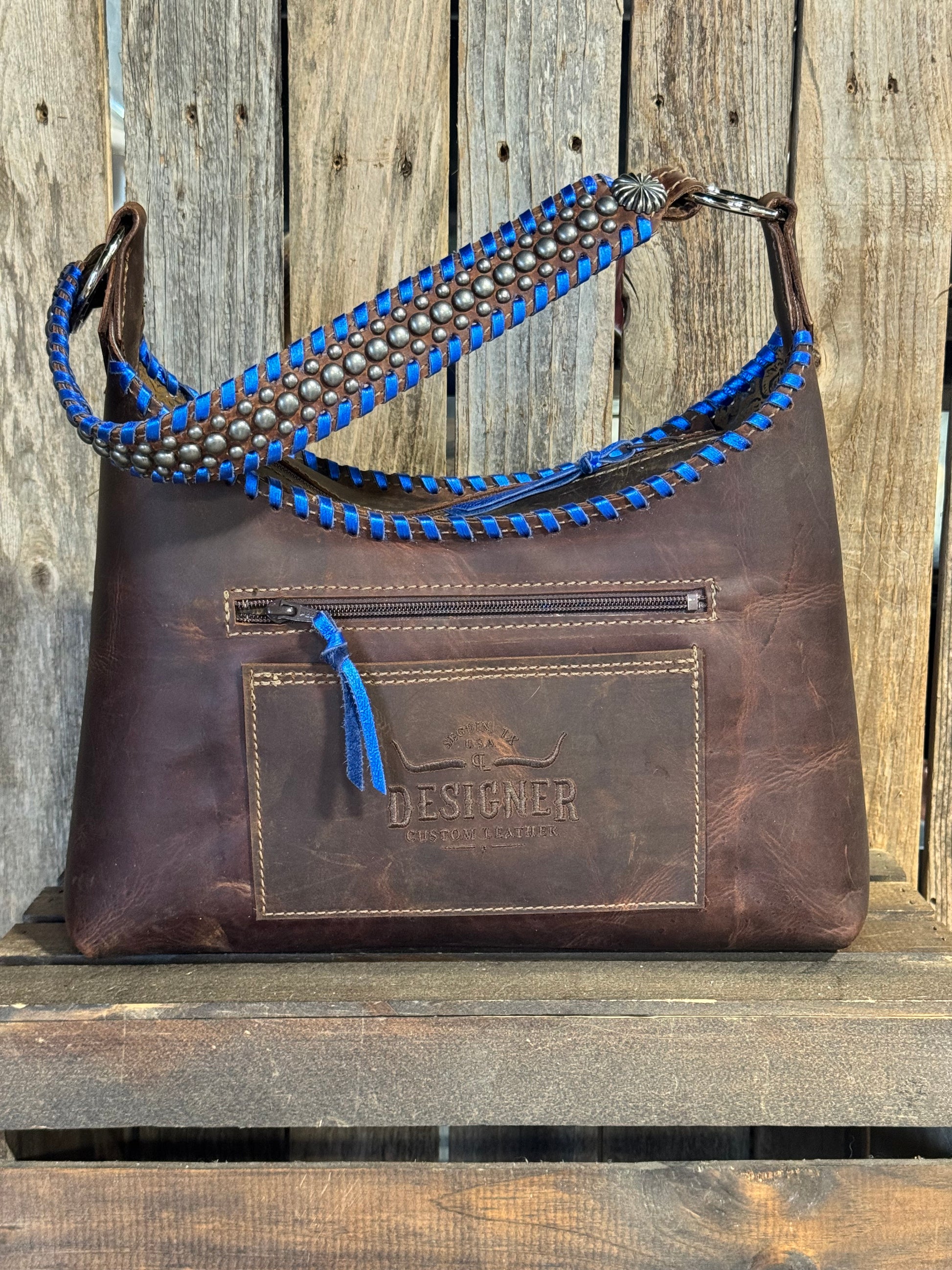 Lined with an exterior back zipper pocket and open pocket