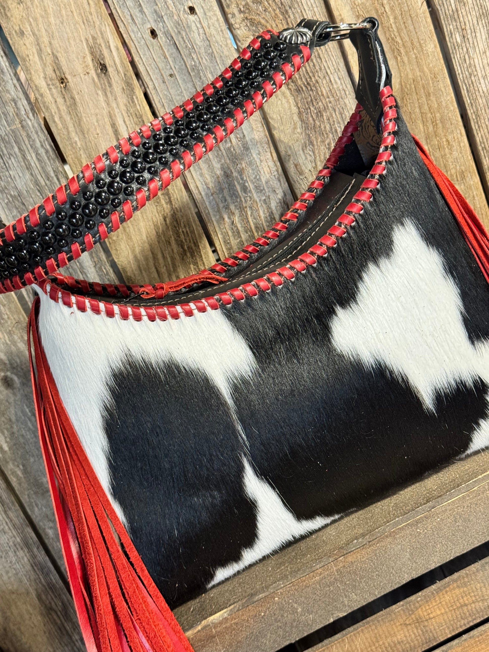 Lined with an exterior back zipper pocket and open pocket