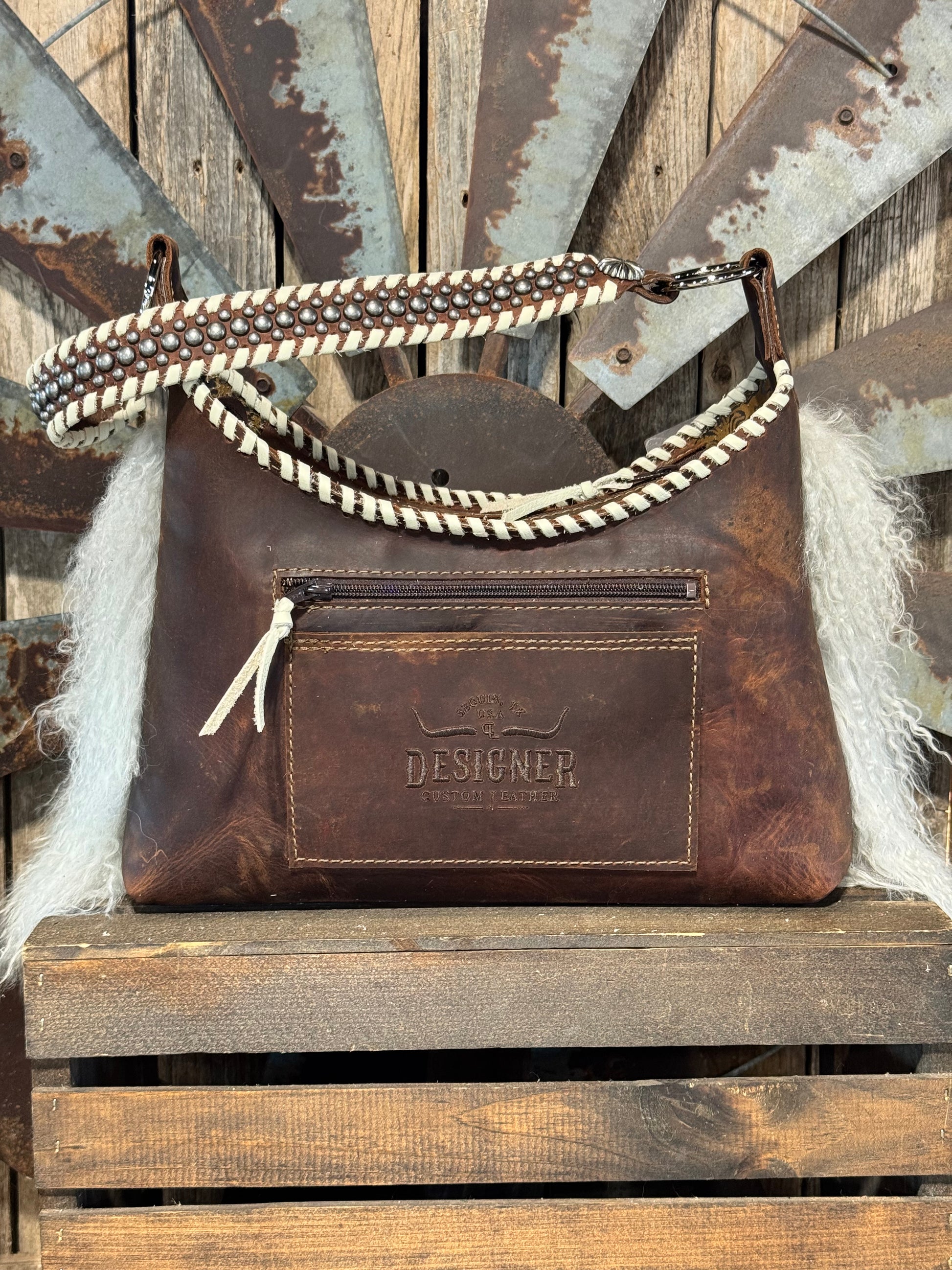 Lined with an exterior back zipper pocket and open pocket