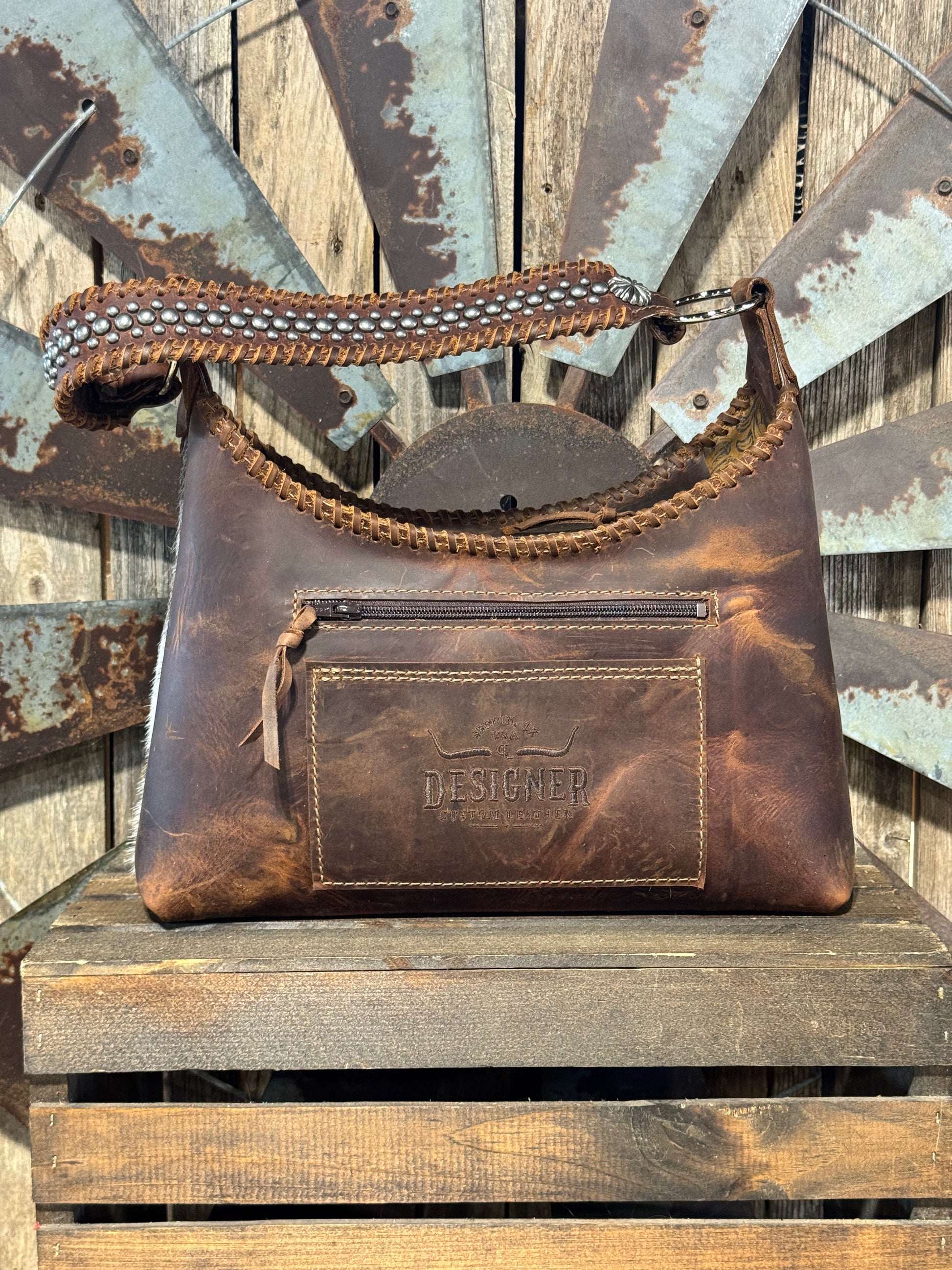 Lined with an exterior back zipper pocket and open pocket