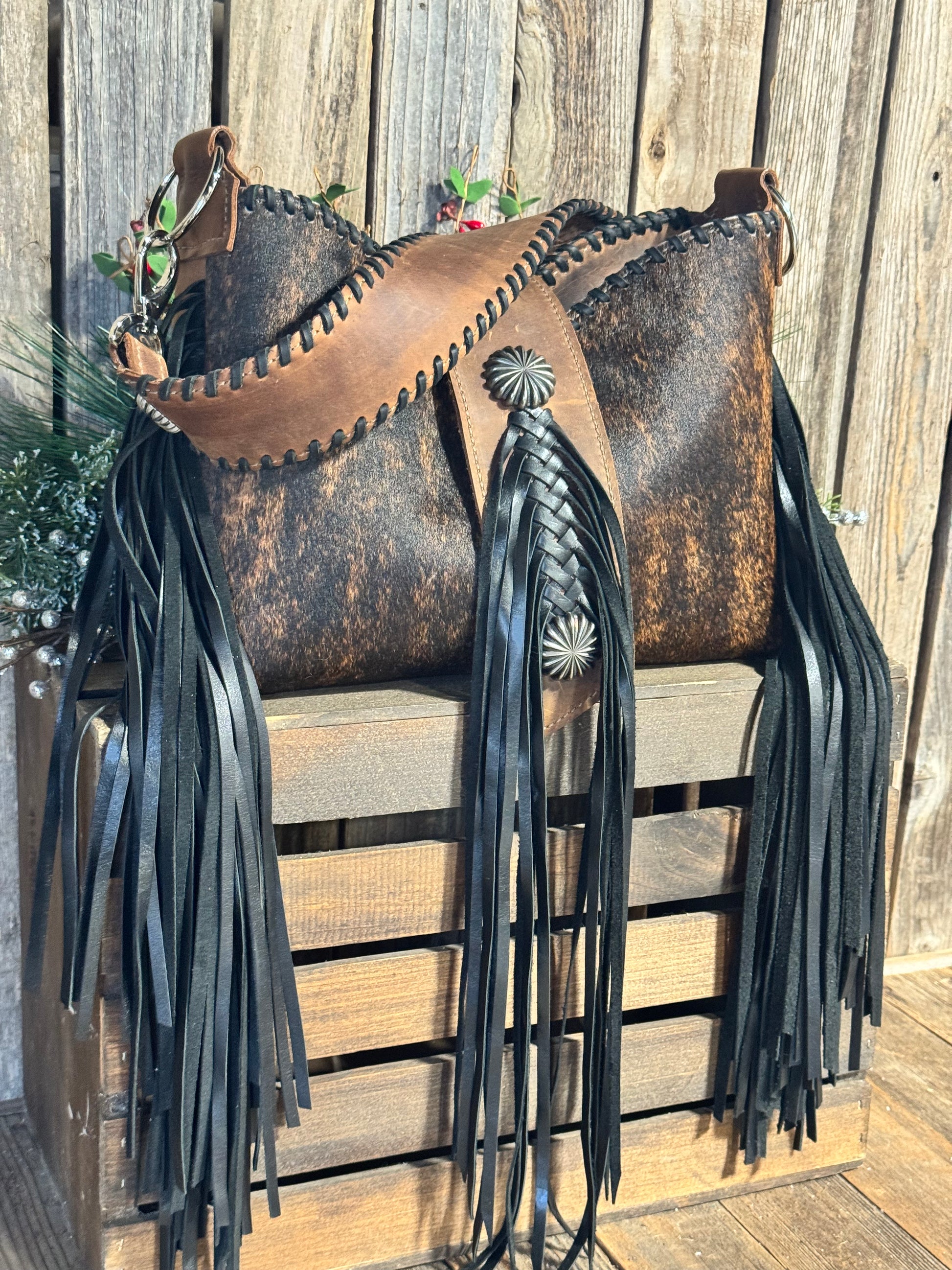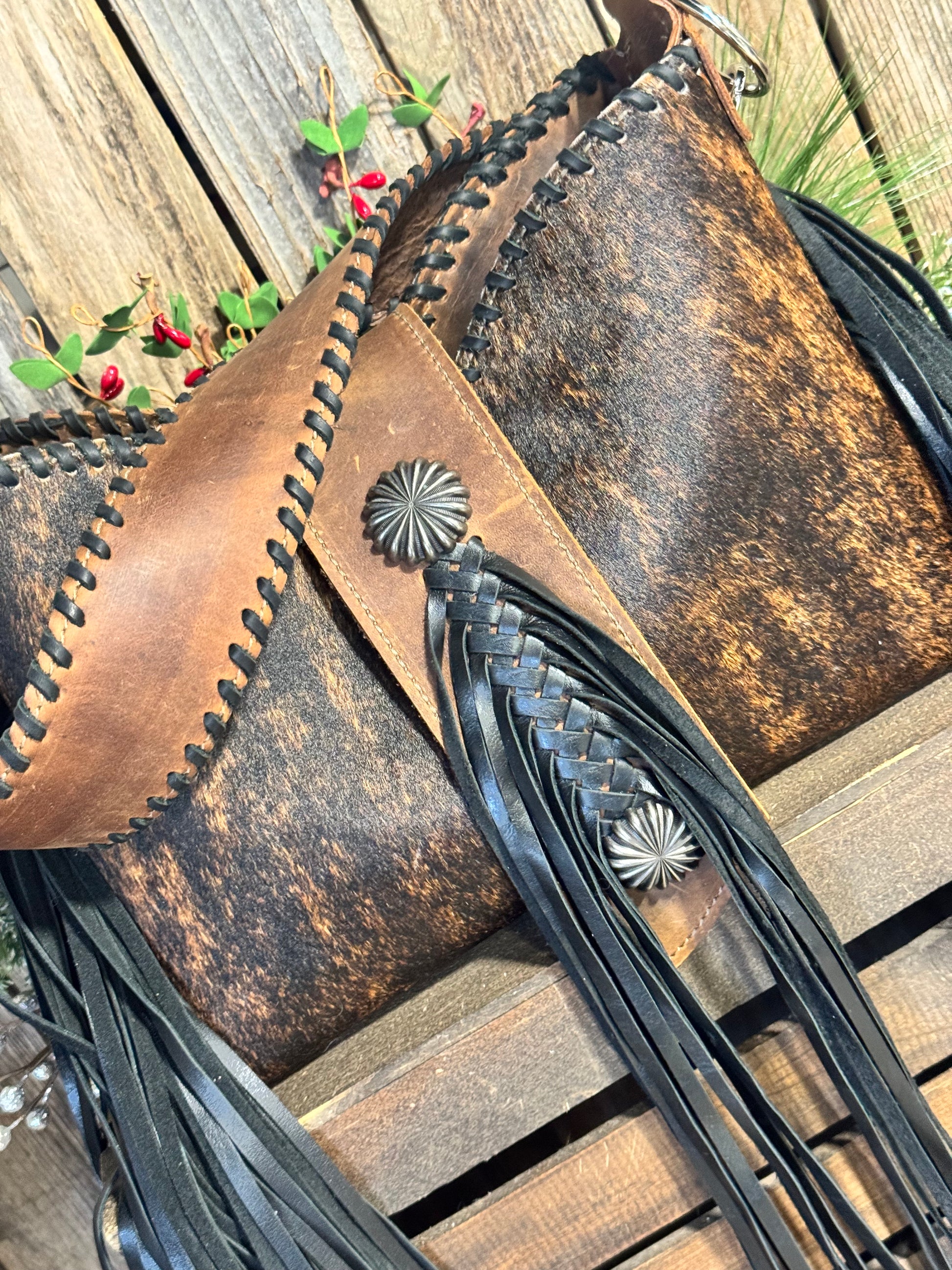 Lined with two interior leather pockets