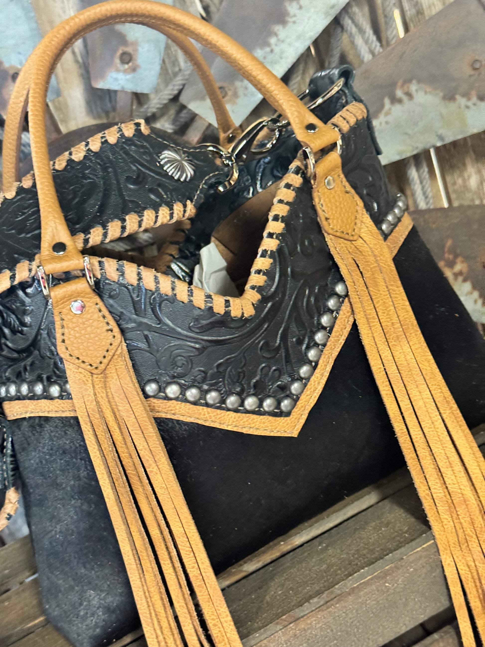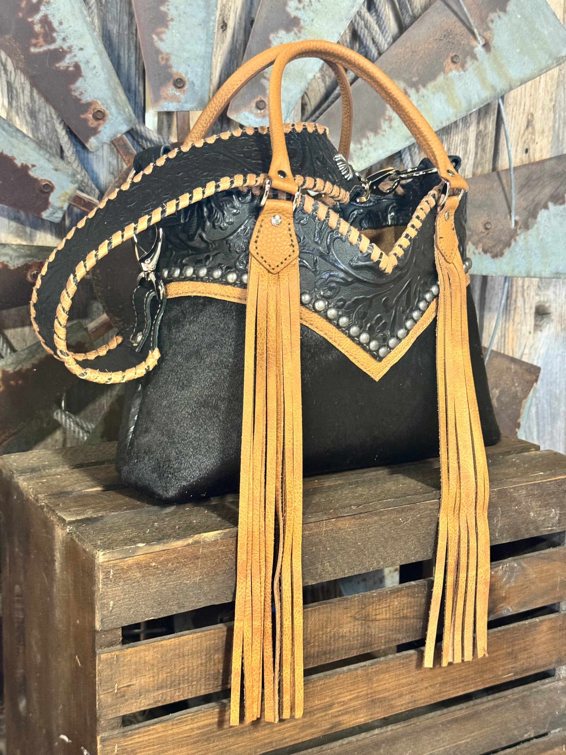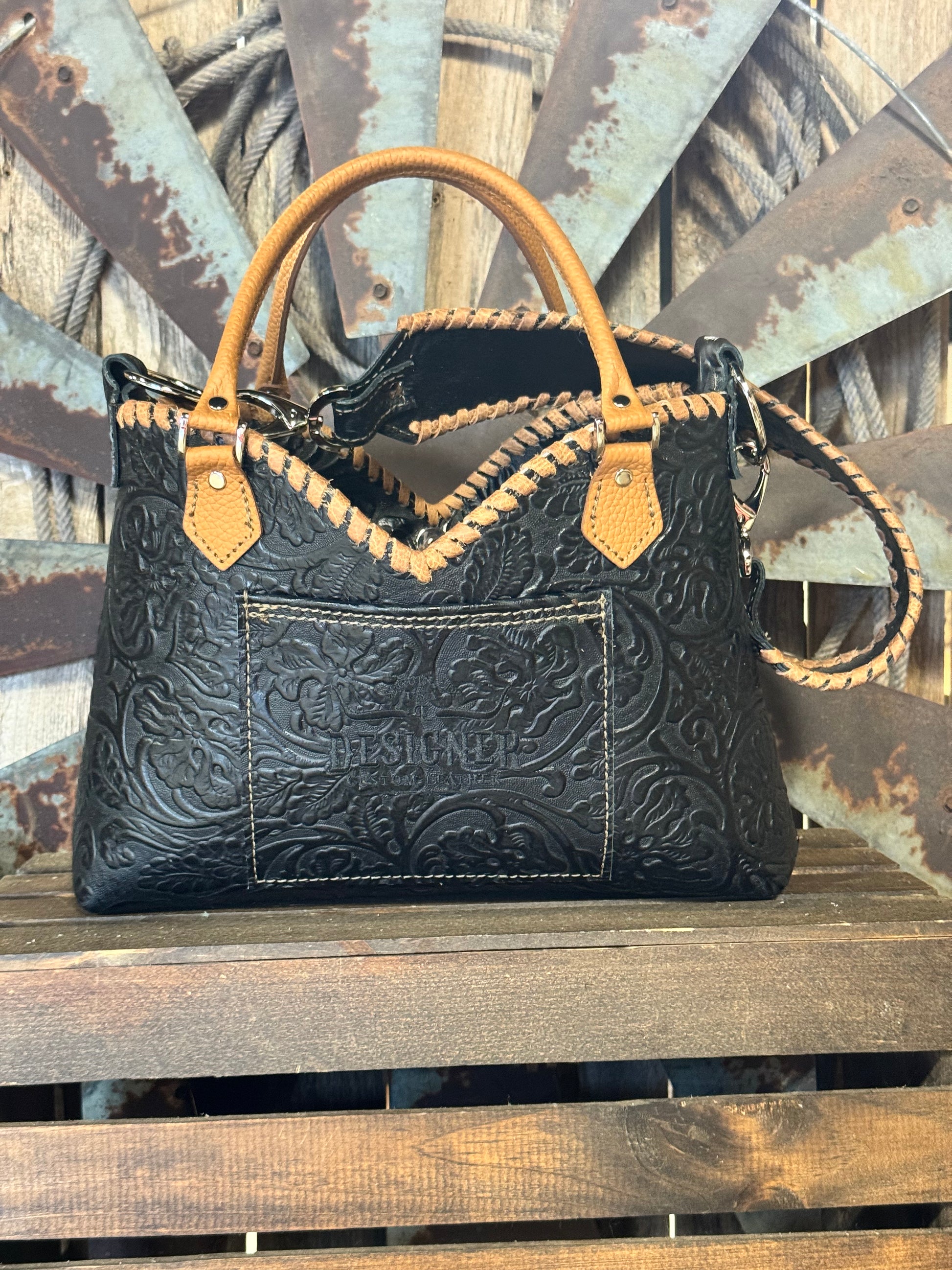 Lined with two interior leather pockets