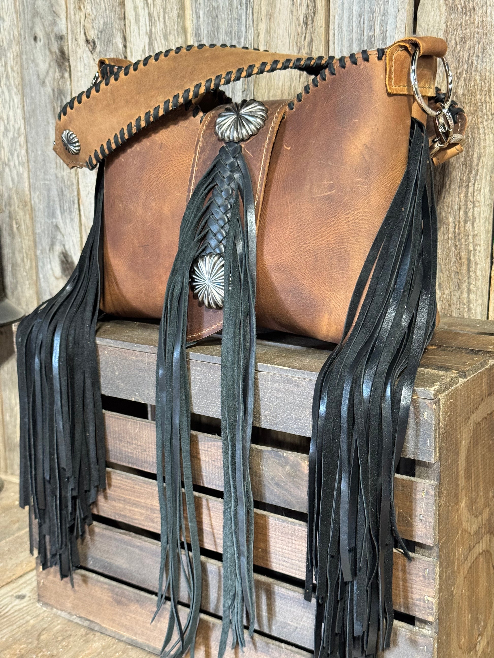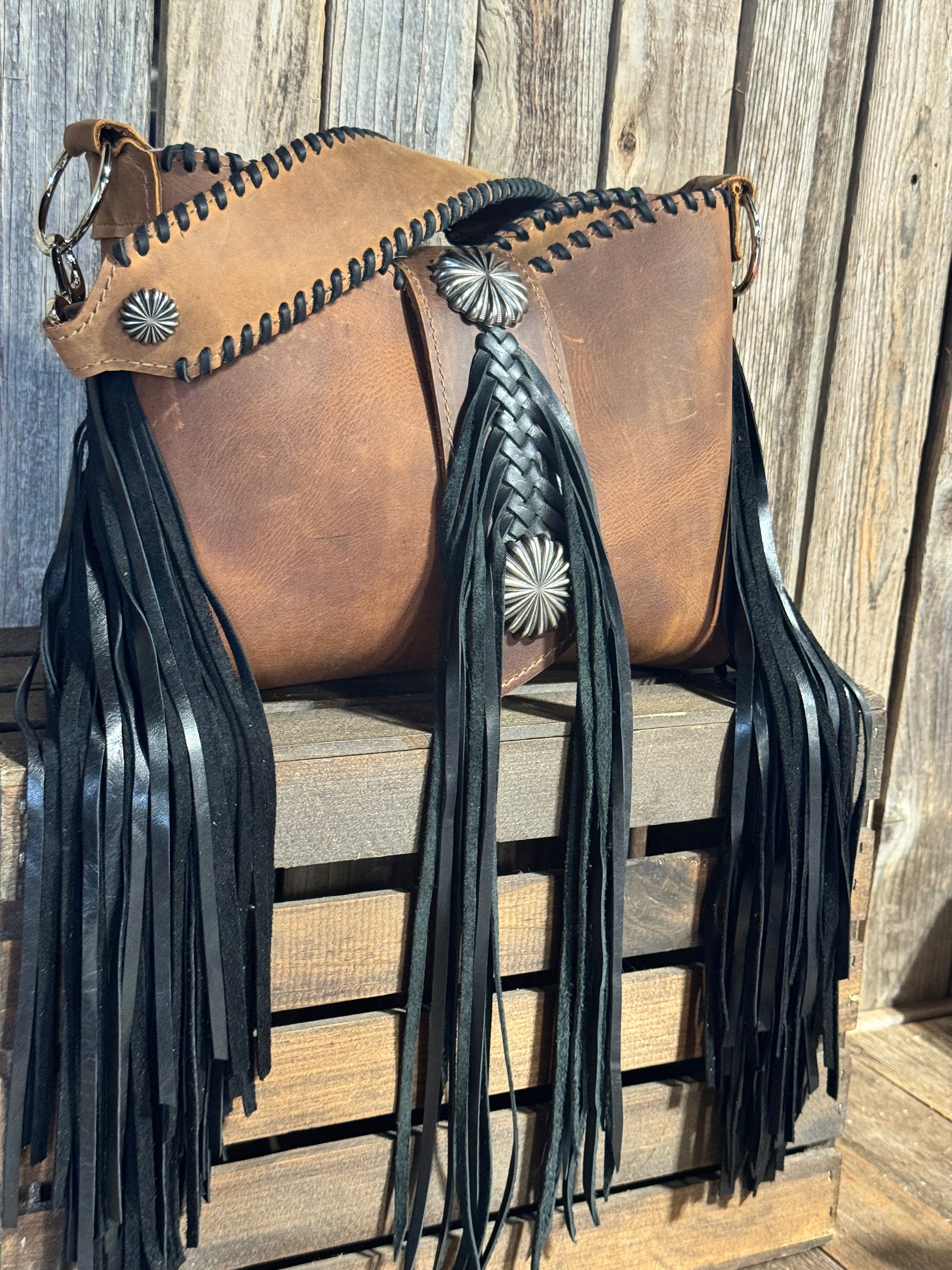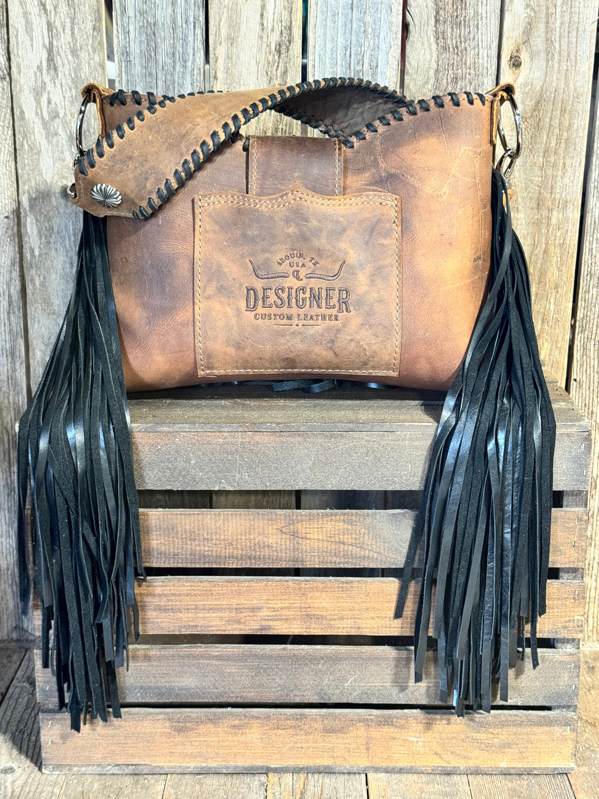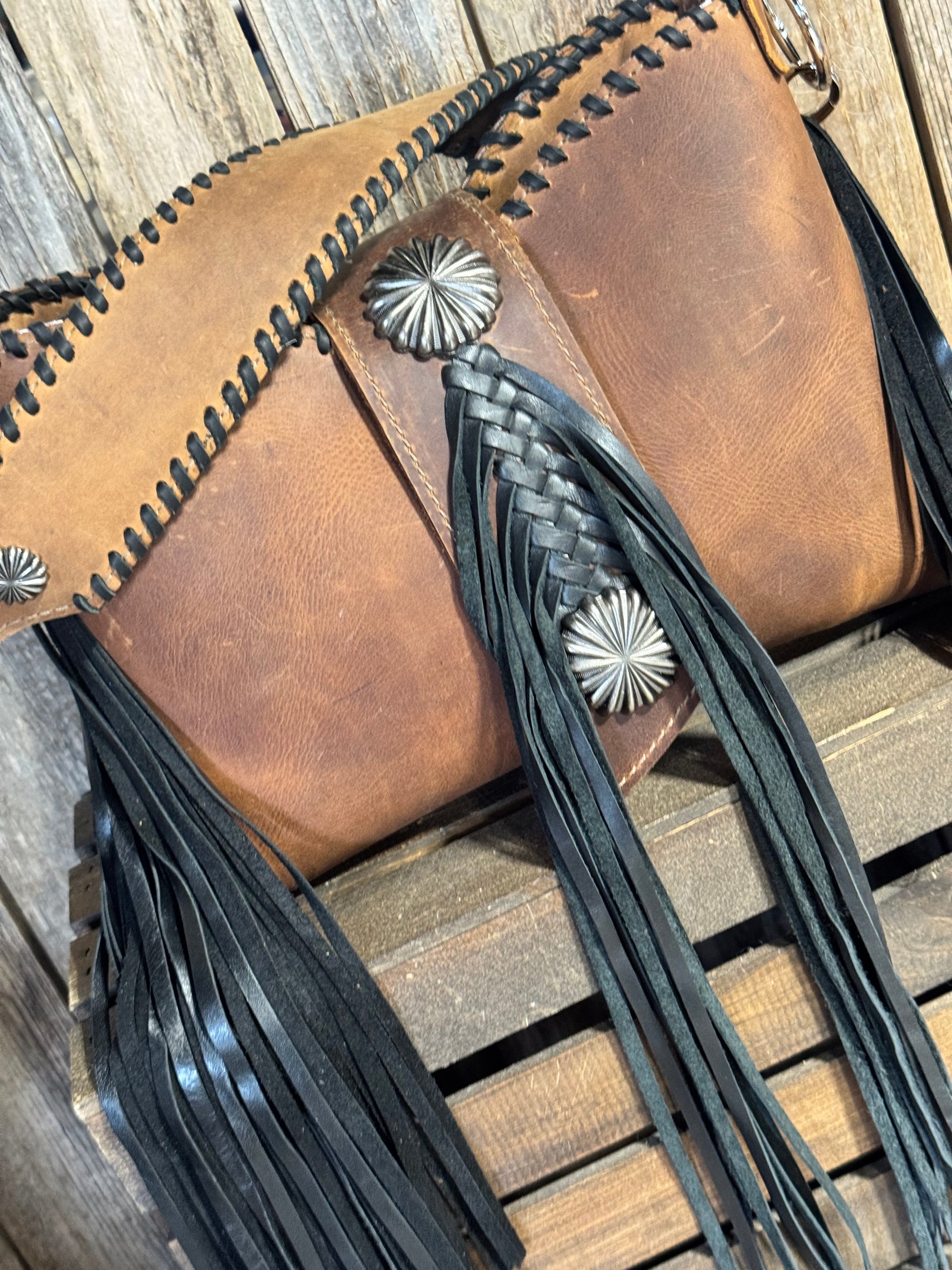 Lined with two interior leather pockets