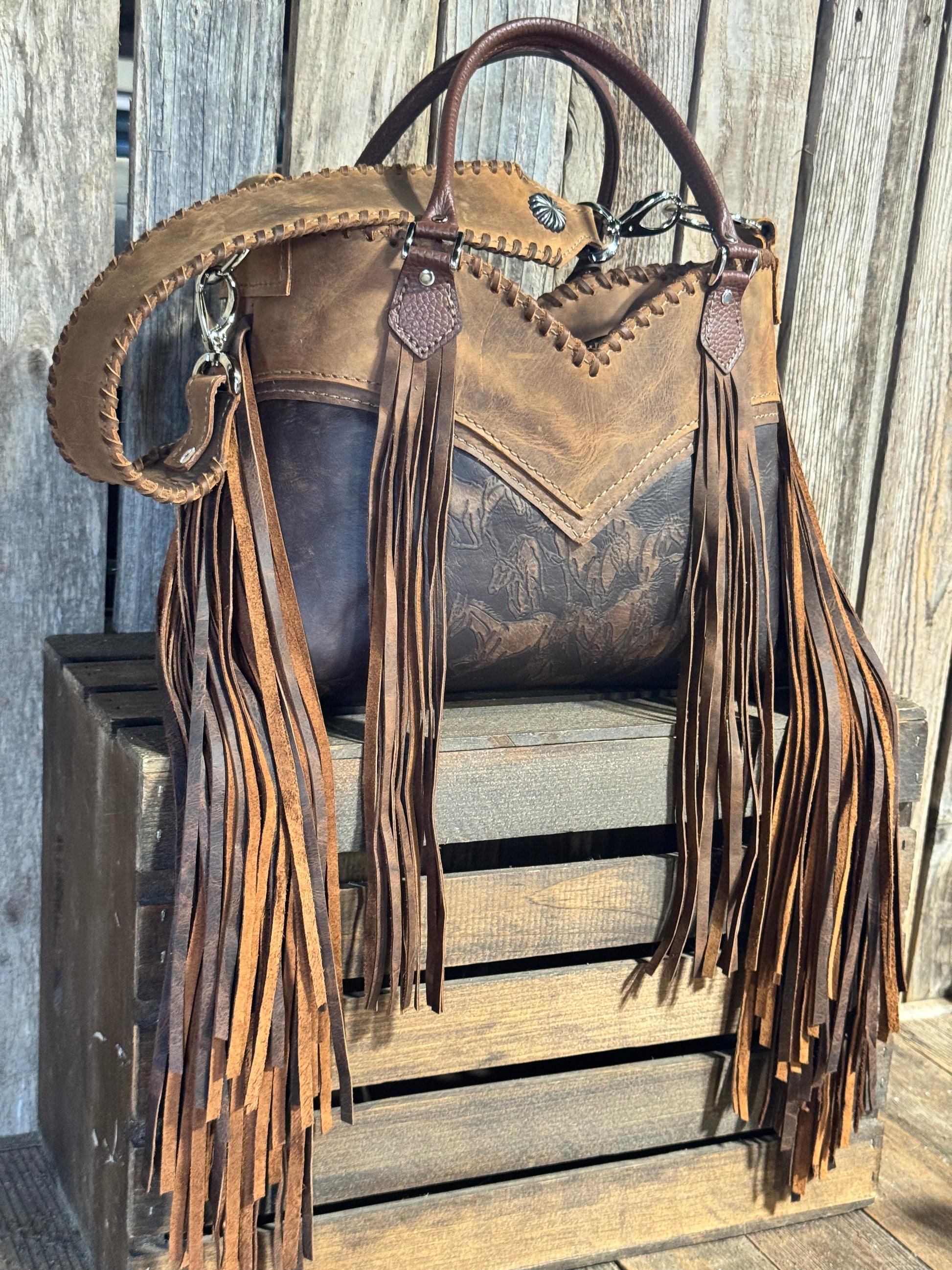 Lined with two interior leather pockets